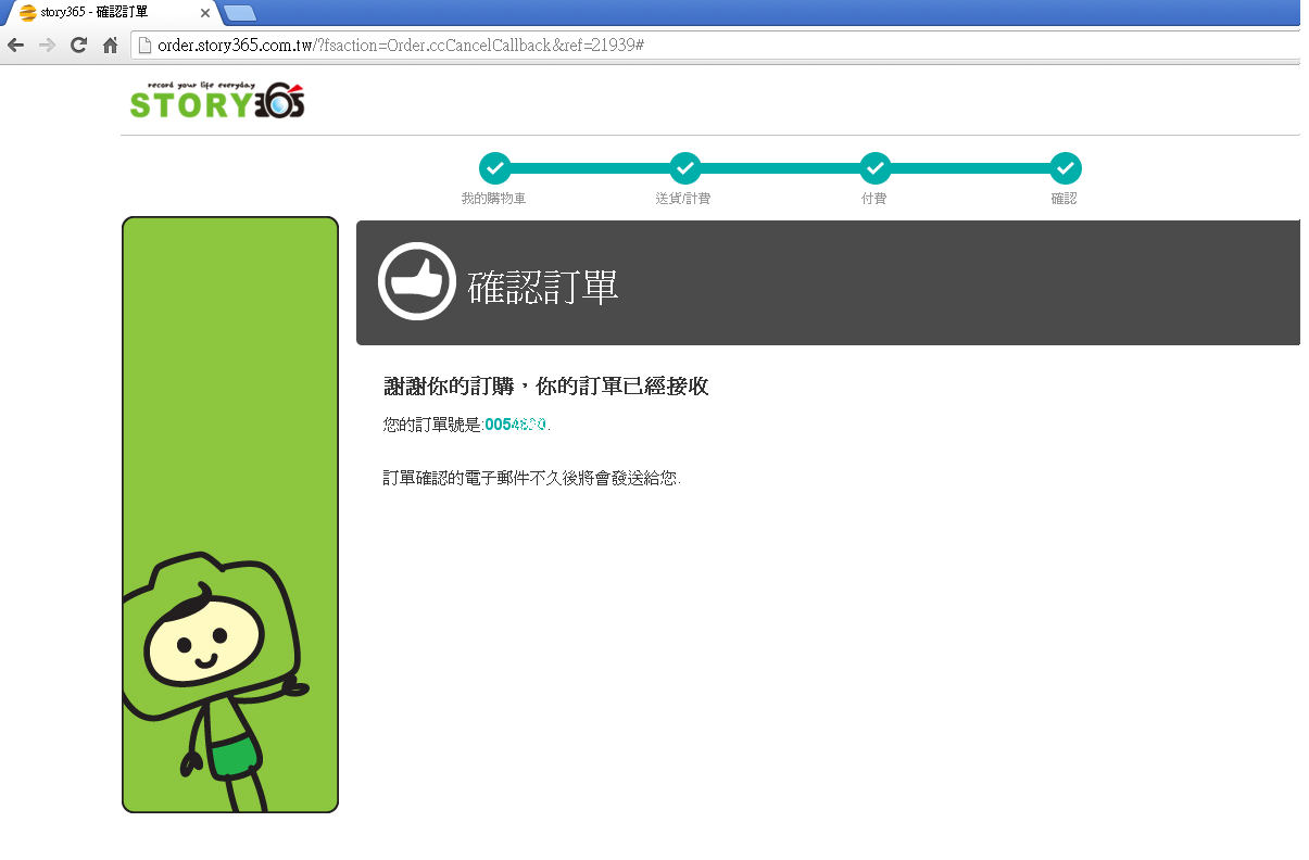 ※如出現再次付款等畫面,請mail到客服信箱 ( service@story365.com.tw ),客服人員會協助您。