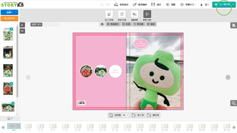編輯完成後,請按下右上方按鈕加入購物車