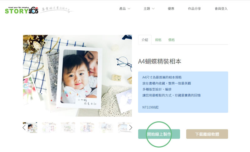 STORY365提供編輯軟體,裡面有許多設計好的版型,套入照片完成後就可上傳。