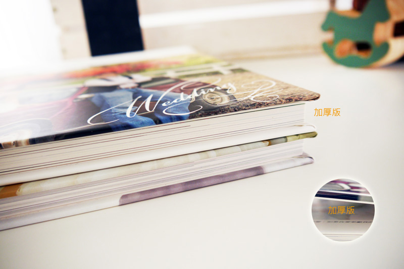 加厚版本為16頁~20頁,照片數量少時建議選擇加厚版,厚度大約與40頁蝴蝶裝正常版本相同。