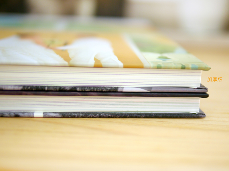 加厚版本為16頁~32頁,照片數量少時建議選擇加厚版,16頁厚度大約與40頁蝴蝶裝正常版本相同。